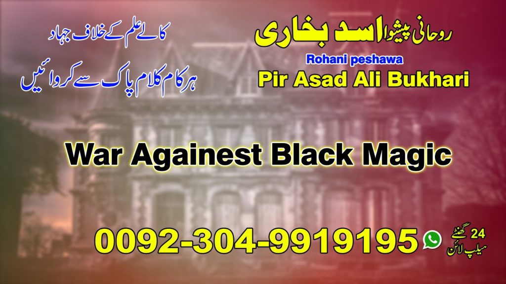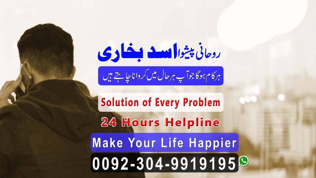اس دنیا و کائنات می ایسا کوئی بھی کام یا مسلہ ایسا نہیں جس کا حل موجود نہ ہو. الله پاک نے تمام مسلوں کا حل قرآن پاک میں عطا کیا ہے . بس ضرورت ہے تو ایک سہی اور صاحب علم رہبر کی. جسے ڈھونڈنا آجکل مشکل ہو گیا ہے لیکن اپ فکر نہ کریں اپ کو کوئی بھی مسلہ ہو آپ پیر اسد شاہ بخاری سے اپنے ہر مسلہ حل کروا سکتے ہیں . پیر اسد شاہ بخاری ایک تجربہ کار روحانی عامل ہیں .